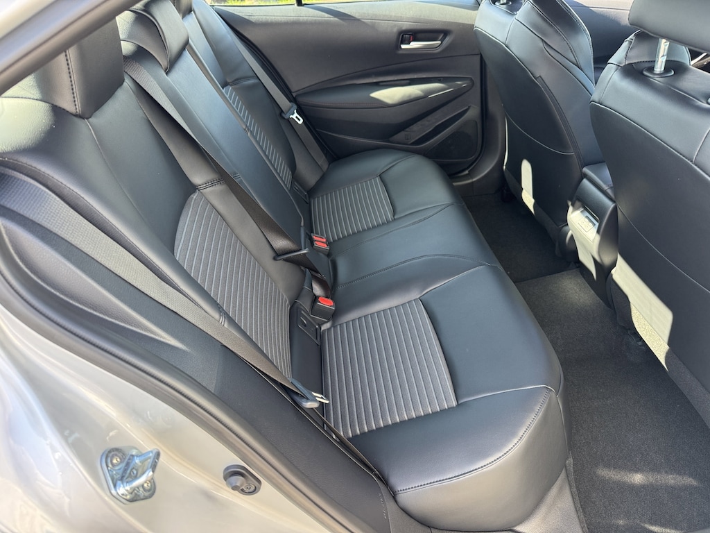 And so far, I like it. I was able to get a 2022 with leather seats, heated front, adjustable driver seat (lumbar support), stitching on the steering wheel and weather mats. I did notice a little bit of a pick-up in power mode on the highway, but it's not a race car. Gas mileage is great. The car had 571 miles on it when it gave me a warning of low fuel. The dash read 29 miles left until empty. I gassed up. The driver seat is comfortable with the options for adjustments. When you press the start button, the car is quiet once on. The car was preset for automatic door unlocking when you shut the car off. I disabled that on the touch screen for safety reasons. I want to be the one to unlock the doors. I keep some armor-all wipes in the door because the leather can get a little scuffed up looking. One time when I shut the car off, the dash showed, "window open." Cool. I think it's pretty fun to drive. IMO, the car needs better visibility. The touch screen should be lower and I removed the rear head rests. (They are easy to put on and take off). I don't often have rear passengers. The trunk is a little small. I haven't signed up for Toyota Connect yet (SOS button, Wi-fi, drive history, theft tracker). As far as value, I bought at a BAD time (during the chip shortage) so I did pay over sticker. However, I needed a reliable and safe car, and I owned a Corolla in the past - this one fit the bill. No more belts to change either. So far, So Good! - 5.0