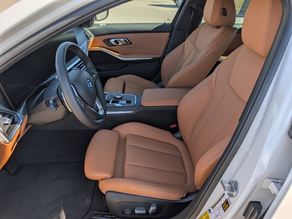 3 Series 330e xDrive, 4D Sedan, 2.0L 4-Cylinder, AWD, Mineral White Metallic, Cognac Artificial Leather.