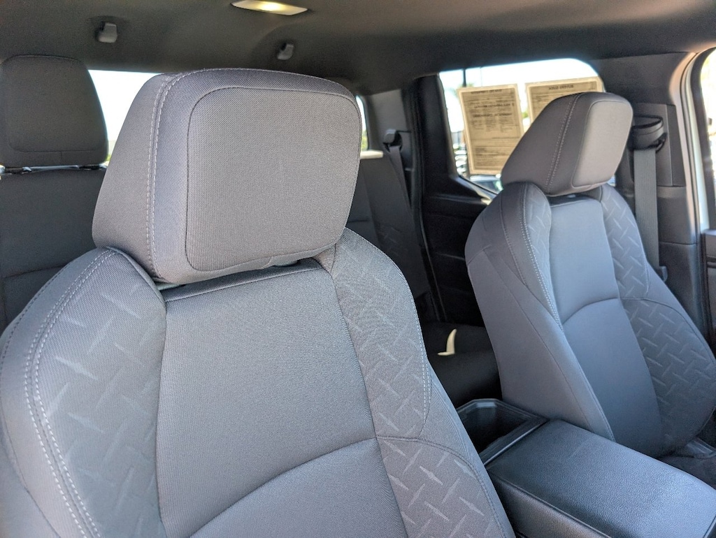- Fabric-trimmed seats; 6-way manually adjustable driver and front passenger seats with 2-way power-adjustable lumbar support on driver's seat only.